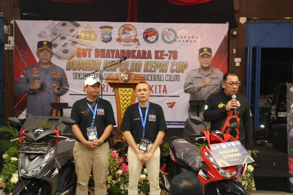 PROBATAM.CO, Batam– Turnamen Domino Kapolda Kepri CUP 2024 dalam rangka HUT Bhayangkara Ke 78 yang diselenggarakan di Dreg’s Café & Resto Mega Legenda, Batam dari tanggal 23 Mei lalu, telah berakhir dengan resmi ditutup oleh Kapolda Kepri Irjen Pol Drs Yan Fitri Halimansyah, MH, Sabtu Malam (8/6/2024).