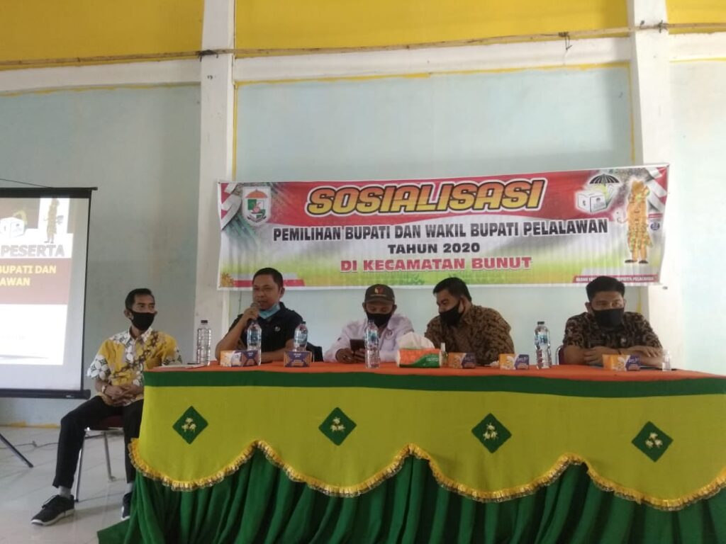 PROBATAM.CO, Pelalawan – Kesbangpol Kabupaten Pelalawan taja sosialisasi pemilihan Bupati dan Wakil Bupati Pelalawan Tahun 2020 di Kecamatan Bunut di gedung serbaguna Kelurahan Pangkalan Bunut, pada Kamis (16/7/2020) lalu.