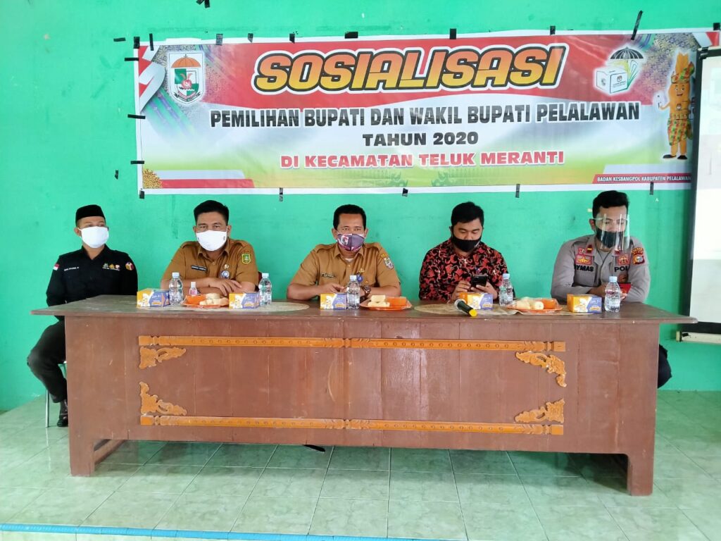 Kesbangpol Kabupaten Pelalawan Taja Sosialisasi Pemilihan Bupati dan Wakil Bupati Pelalawan Tahun 2020 di Kecamatan Teluk Meranti. Kegiatan ini dilaksanakan di Gedung Serba Guna Kantor Camat Teluk Meranti pada Selasa (29/9/2020).