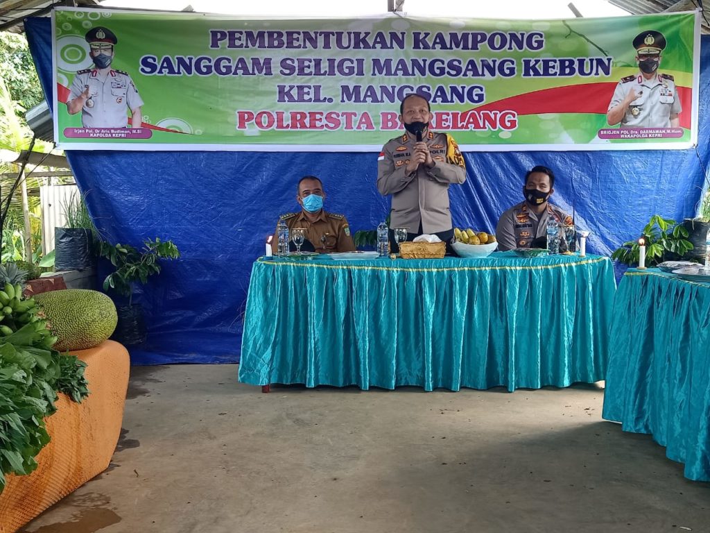 PROBATAM.CO, Batam – Kapolresta Barelang AKBP Purwadi W Anggoro didampingi Pejabat Utama (PJU) dan Kapolsek Sei Beduk, resmi membentuk kampung tangguh, ‘Kampong Sanggam Seligi Mangsang Kebun’, kelurahan Mangsang, Kecamatan Sei Beduk, Kota Batam, Senin (15/6/2020) siang.
