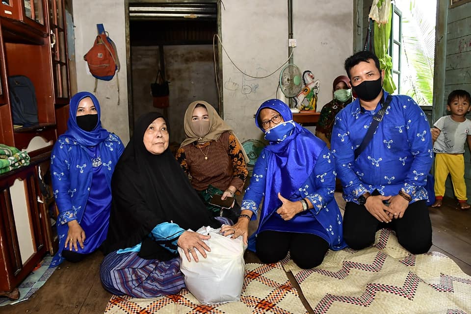 Ketua TP PKK Kabupaten Natuna Hj. Nurhayati Hamid Rizal dan pengurus menyerahkan bantuan. (photo:def/protokol).
