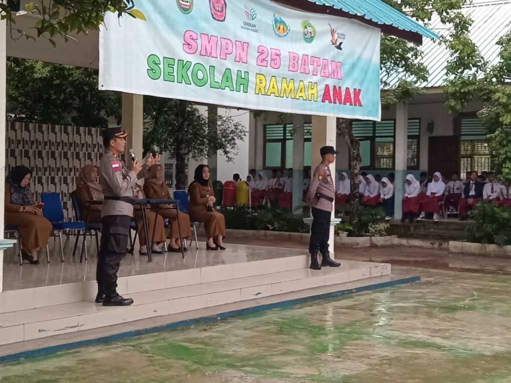 Kali ini, Polsek Sekupang mengisi pengenalan lingkungan anak didik baru 2023 SMP Negeri 25 Batam, di kelurahan Tiban Indah, Kecamatan Sekupang, Kota Batam pada kesempatan itu hadir juga Kepala Sekolah Dra. Maisyarah, Wakil dan para Guru serta peserta didik baru SMP Negeri 25 Kota Batam, Selasa (11/07/2023).