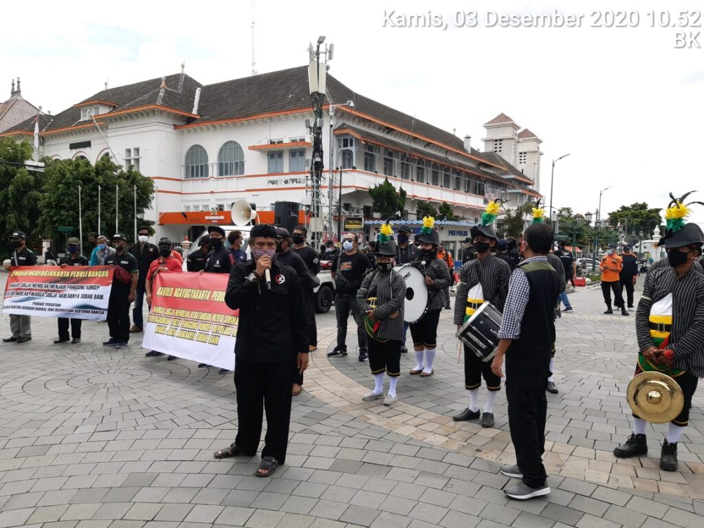 Elemen masyarakat Yogya, menyampaikan pendapat dengan tema ‘Kawula Ngayogyakarta Peduli Bangsa’ di Titik Nol, Yogyakarta, Provinsi DIY, Kamis (3/12/2020). (Photo:istimewa)