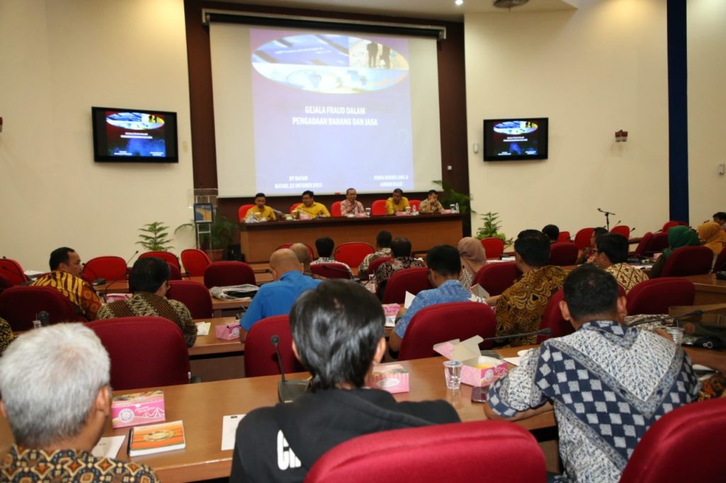 Koordinator Pengawasan Bidang Investigasi BPKP Provinsi Kepri, Ahmad Fauzi menyampaikan 2 pokok bahasan yaitu ketentuan pedoman barang atau jasa pemerintah dan memahami gejala fraud dalam pengadaan barang atau jasa. Terkait dengan pengadaan barang dan jasa, Ahmad memaparkan pentingnya kegiatan ini sebagai peringatan dini, karena 80% anggaran untuk pengadaan barang dan jasa.