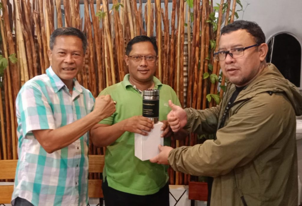 Kabag Komunikasi Publik Kemenpan RB Elfansuri SIP MA serahkan cinderamata Saat kunjungan Ke Tanjungpinang, Sabtu (4/12/2021).