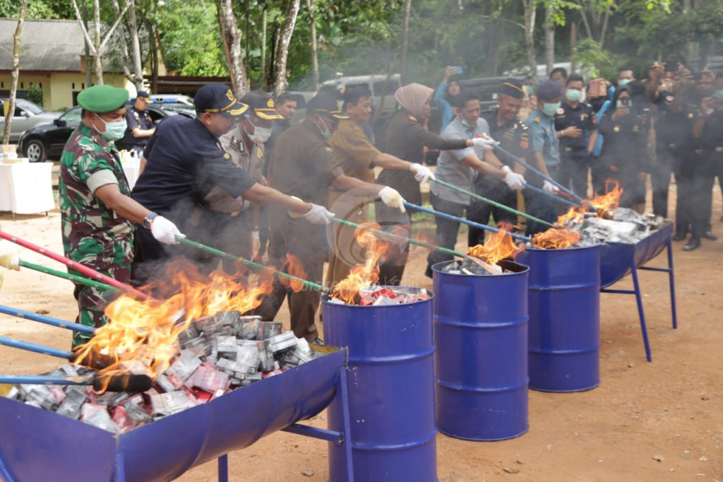 Pemusnahan dilaksanakan di areal Tempat Pembuangan Akhir sampah, Jalan Ganet, Tanjungpinang, dihadiri sejumlah pejabat di lingkup Pemprov Kepri, Pemko Tanjungpinang, Pemkab Bintan dan anggota Forum Komunikasi Pimpinan Daerah.