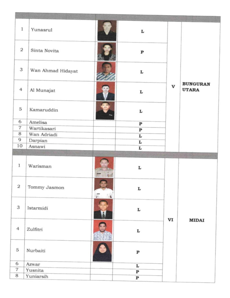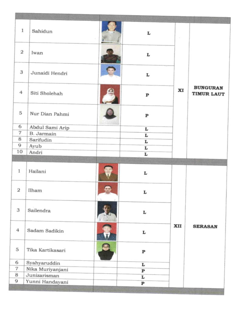 Informasi dihimpun PROBATAM.CO, adapun masing-masing calon Anggota PPK yang dinyatakan lulus seleksi wawancara, yaitu, kecamatan Subi sebanyak 10 Orang, Suak Midai 10 Orang, Pulau Tiga Barat 10 Orang, Bunguran Barat 7 Orang, Bunguran Utara 10 Orang dan, Midai 8 Orang.