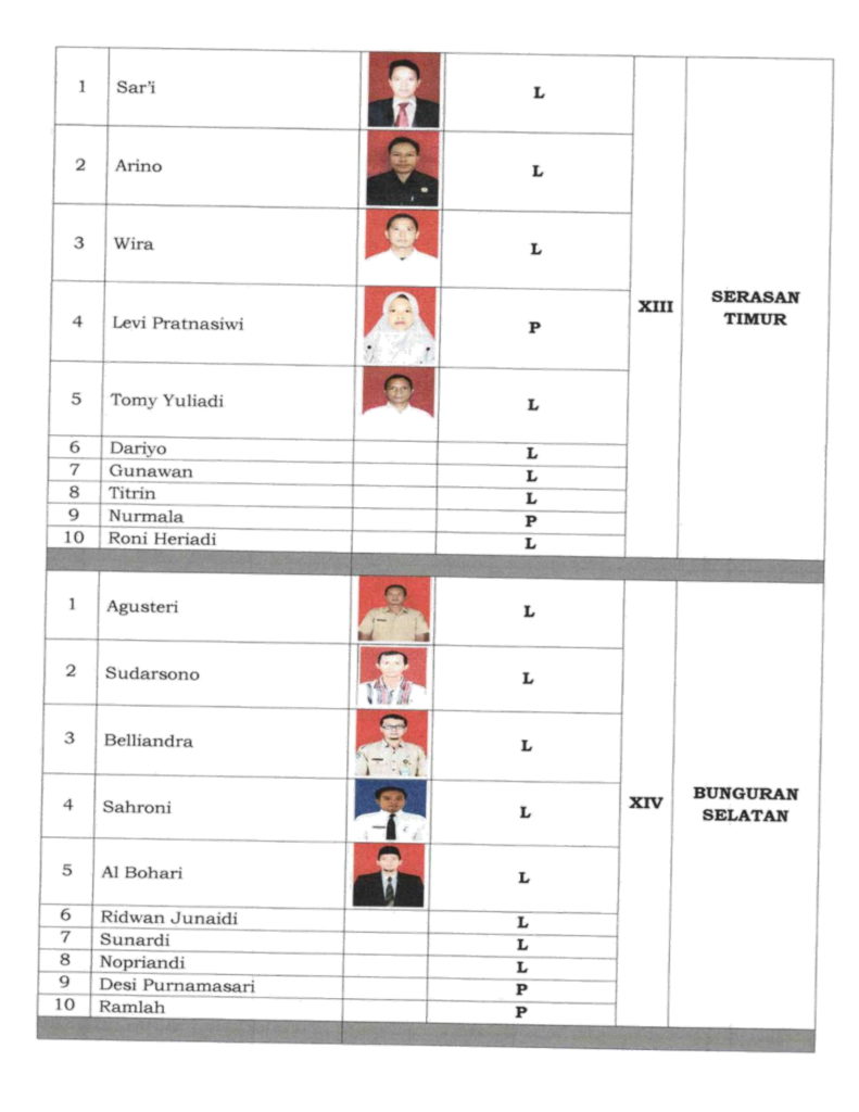 Selain itu, anggota PPK Kecamatan Bunguran Timur 10 Orang, Bunguran Tengah 10 Orang, Pulau Tiga 7 Orang, Pulau Laut 9 Orang, Bunguran Timur Laut 10 Orang, Serasan 9 Orang, Serasan Timur 10 Orang, Bunguran Selatan 10 Orang, dan Bunguran Batubi 10 Orang.