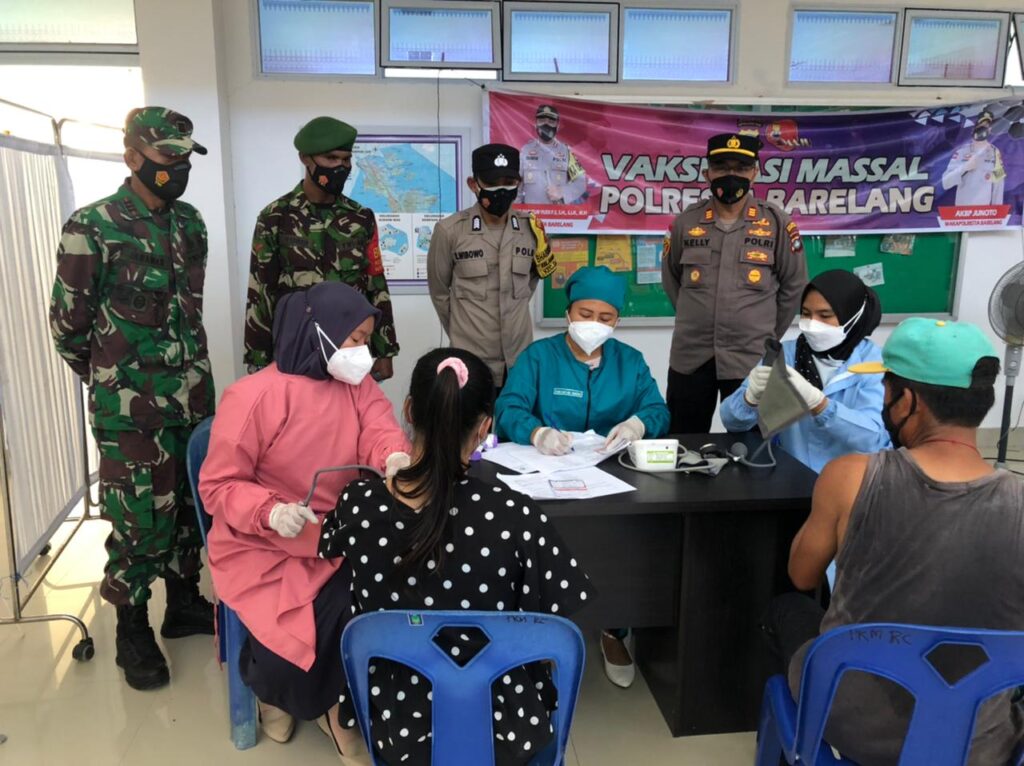 PROBATAM.CO, Batam- Pelaksanaan Gerai Vaksin Presisi dalam rangka Bhakti Kesehatan Bhayangkara untuk negeri Dosis 2 kepada masyarakat Galang, Kecamatan Galang, Kota Batam di UPT Puskesmas Rempang Cate.