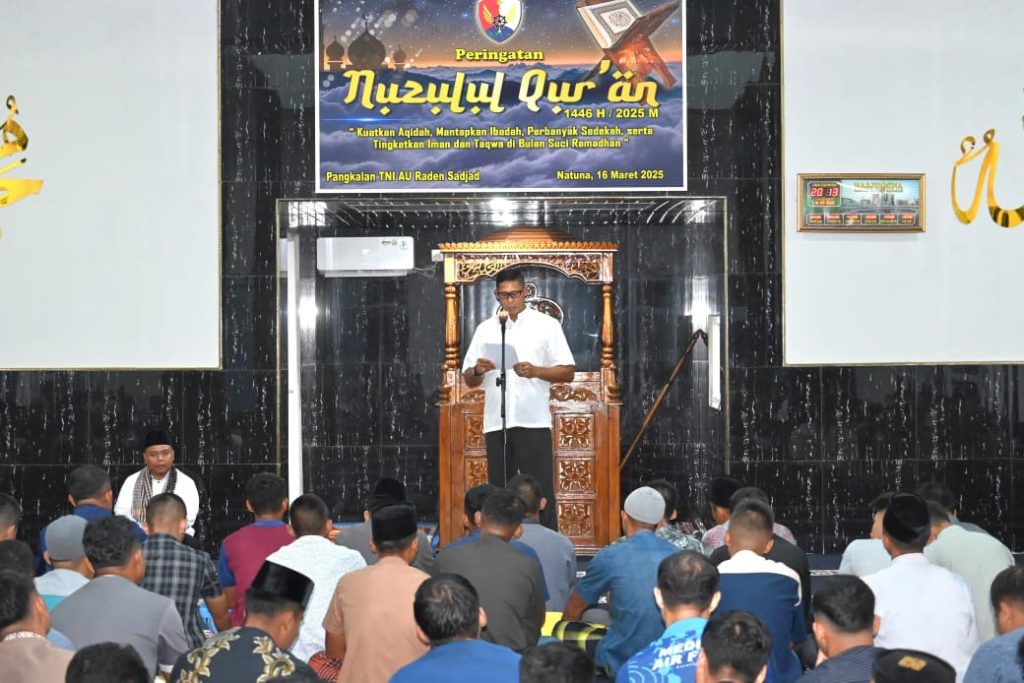 PROBATAM.CO,Natuna – Malam penuh khidmat menyelimuti Masjid Mina, Lanud Raden Sadjad (RSA), Natuna, Minggu (16/3/2025). Ratusan personel TNI AU, keluarga besar Lanud RSA, hingga masyarakat sekitar berkumpul dalam peringatan Nuzulul Qur’an 1446 H, sebuah momen yang tidak hanya menjadi ajang ibadah, tetapi juga refleksi spiritual di bulan suci Ramadhan.