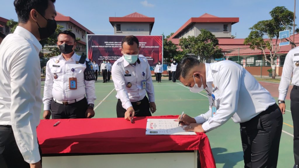 PROBATAM.CO, Batam – Lembaga Pemasyarakatan Kelas IIA bersama Satuan Kerja Kanwil Kemenkumham Kepri se-kota Batam menggelar Deklarasi Janji Kinerja dan Penandatanganan Janji Kinerja Tahun 2022, Jumat (28/01/2022).