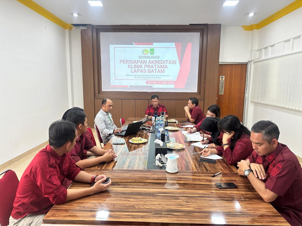 PROBATAM.CO, Batam– Dalam upaya meningkatkan standar pelayanan kesehatan yang ada di Lapas, Lapas Batam menerima kedatangan Tim Akreditasi Klinik yang mengadakan Sosialisasi Akreditasi Klinik Pratama. Kamis (27/06/2024).