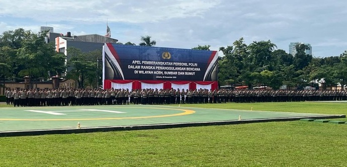 Apel pemberangkatan pasukan dari Mabes Polri dilaksanakan pada Jumat (26/12/2025) di Lapangan Bhayangkara Mabes Polri, Jakarta Selatan. Apel dipimpin langsung oleh Wakapolri Komjen Dedi Prasetyo.
