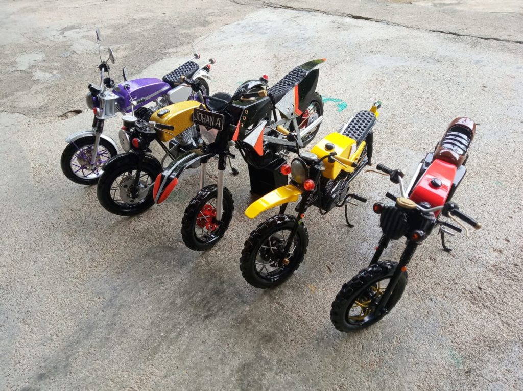 “Saya kadang jalan sore-sore pakai motor, melihat ada saja sampah limbah pelastik di jalan, saya bawa pulang dan iseng-iseng di rumah bikin miniatur untuk buang suntuk aja,” kata Edy Kurniawan kepada PROBATAM. CO, Kamis (30/1/2020).