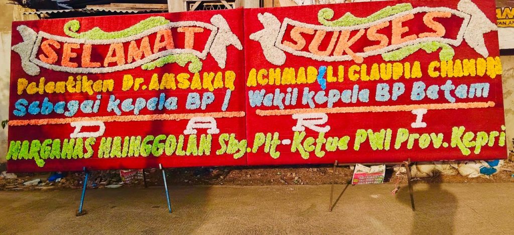 “Karangan bunga ini sebagai ungkapan kegembiraan dan kebahagiaan kami atas pelantikan Amsakar Achmad dan Li Claudia Chandra sebagai Walikota dan Wakil Walikota Batam sekaligus sebagai Kepala dan Wakil Kepala BP Batam,” ujar Marganas Nainggolan, Kamis (20/2/2025).