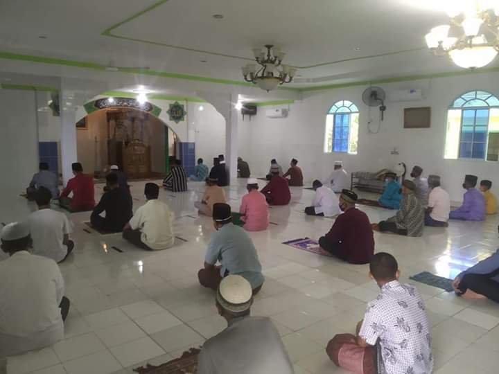 Pada hari pertama dibolehkannya kembali sholat Jumat berjemaah, masjid-masjid di Belakangpadang juga menerapkan jaga jarak.
