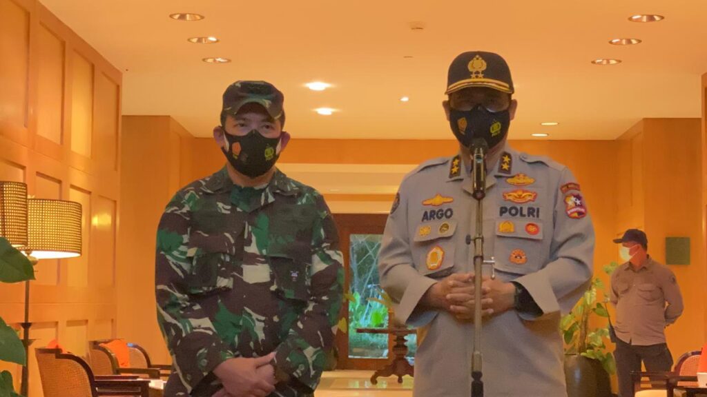 Kadiv Humas Polri Irjen Pol. Raden Prabowo Argo Yuwono didampingi oleh Kapuspen TNI, Mayjen TNI Ahmad Riad, saat memberikan pernyataan kepada wartawan di Rimba Papua Hotel (RPH), Sabtu (28/11/2020). (Photo:istimewa)
