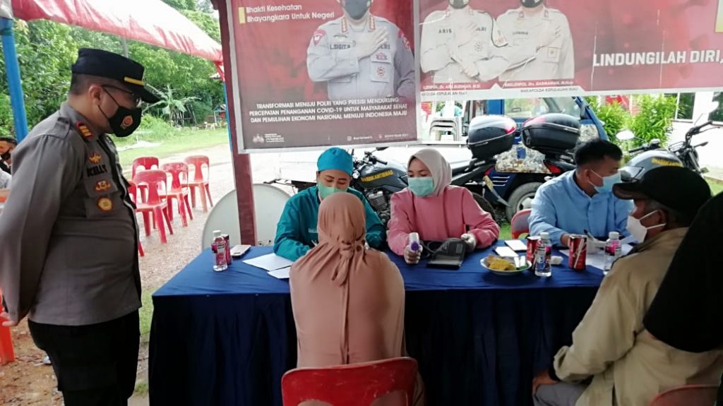 PROBATAM.CO, Batam– Gerai Vaksin Merdeka Lancang Kuning Polresta Barelang Dalam rangka Bhakti Kesehatan Bhayangkara untuk Negeri kepada Masyarakat Kecamatan Galang, Kota Batam, Kamis (30/9/2021 sekira pukul 09.00 wib s/d 12.00 WIB di Mako Polsek Galang.
