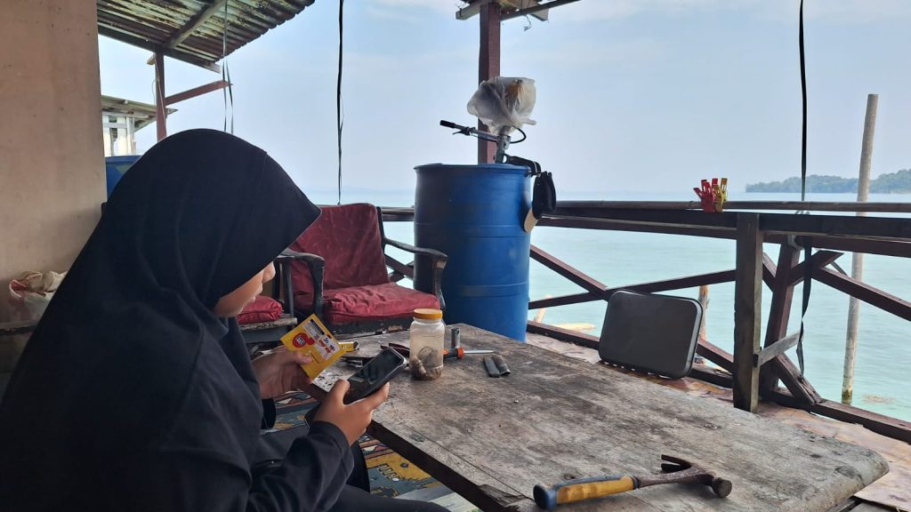 Mengaktifkan Kartu Perdana – Fiona Trisha (10) salah seorang pelajar yang masih duduk dibagku Sekolah Dasar di Pulau Belakang Padang, Batam, Kepri sedang mengaktifkan kartu perdana Indosat Ooredoo Hutchison (Indosat). Saat ini Indosat serius dalam memperkuat jaringan di area terluar provinsi kepulauan Indonesia, salah satunya Kepri. Terbukti dengan bertumbuhnya jaringan di Kepri hingga 118 persen sejak merger. (probatam.co/hadi)