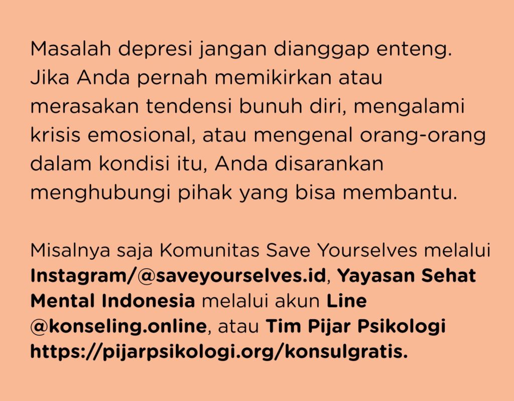 Depresi kerap dianggap bukan sebuah penyakit, sehingga membuat banyak orang mengabaikan gejalanya. Menyebabkan 800 ribu orang bunuh diri sepanjang tahun lalu akibat depresi yang tak ditangani dengan tepat. Bunuh diri kini juga menjadi penyebab kematian nomor dua yang mengancam remaja hingga dewasa usia 15-29 tahun.