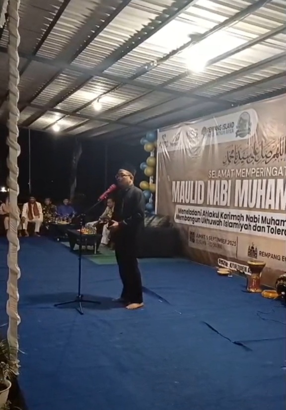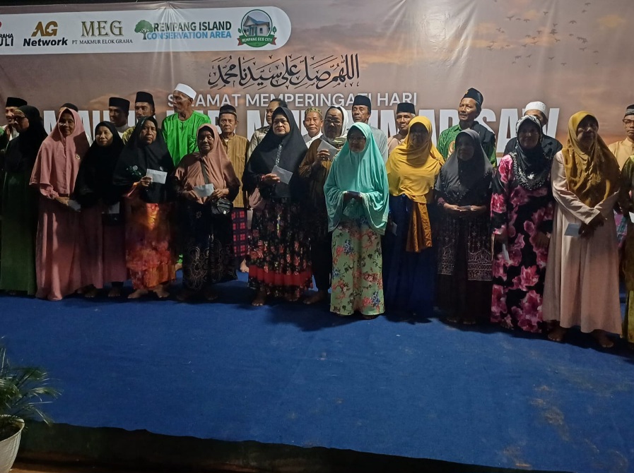 Suasana penuh kekeluargaan dan kehangatan tampak dalam peringatan Maulid Nabi Muhammad SAW yang digelar warga Perumahan Rempang Eco City (REC) bersama PT Makmur Elok Graha, Jumat (5/9/2025) malam.