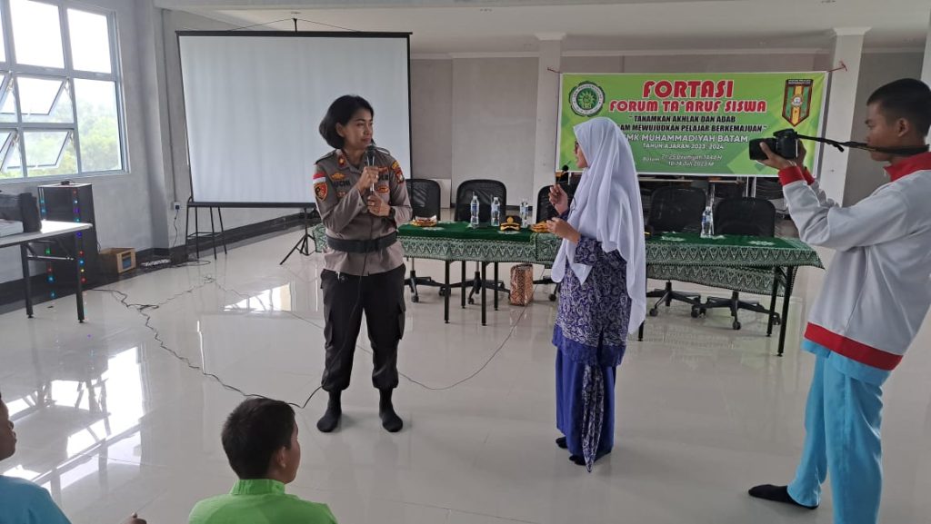 PROBATAM.CO, Batam– Dalam rangka kegiatan MPLS ( masa pengenalan lingkungan sekolah) Kapolsek Batu Aji Kompol Restia Octane Guchi, SE, SIK, memberikan pemahaman kepada siswa SMK Muhammadiyah Tertib berlalu lintas di wilayah hukum Polsek Batuaji, Polresta Barelang.
