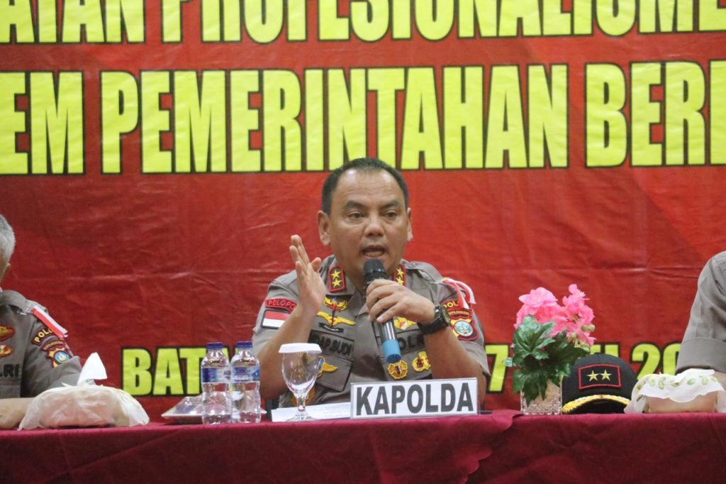 PROBATAM.CO, Batam- Kapolda Kepri Irjen Pol Andap Budhi Revianto membuka Musrenbang Polda Kepri Tahun 2019 dengan tema Peningkatan Profesionalisme Polda Kepri melalui sistem pemerintahan berbasis elektronik Rabu (26/6/2019) di Ballroom Hotel Golden View, Kota Batam.