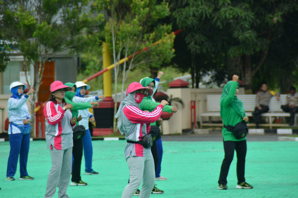 PROBATAM.CO, Natuna – Ketua Bhayangkari Cabang Natuna Ny. Dian Ike, hari ini, Sabtu (26/9/2020) memimpin Olahraga Bersama dalam rangka Hari Kesatuan Gerak Bhayangkara ke 68 tahun 2020 di Lapangan Apel Mapolres Natuna, Ranai.