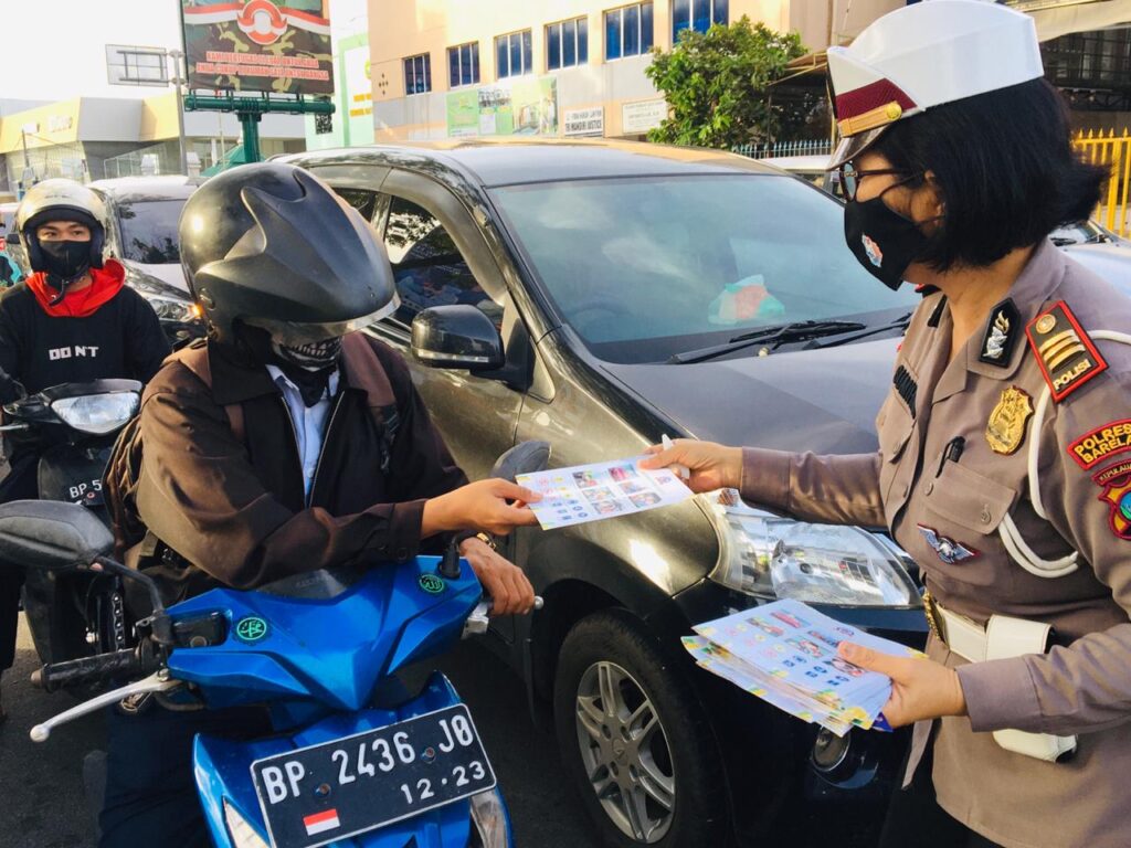 PROBATAM.CO, Batam- Personil Satlantas Polresta Barelang, hari ini, Rabu (29/7/2020), kembali melakukan kegiatan pembagian brosur dan stiker keselamatan kepada pengendara kenderaan dalam rangka Operasi Patuh Seligi 2020, di Simpang Baloi Center (Poslantas 905), Kota Batam.