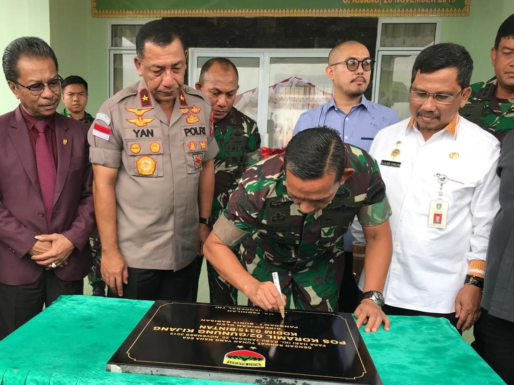 PROBATAM.CO, Bintan – Pangdam I/Bukit Barisan Mayjen TNI MS Fadhilah resmikan dan meneken prasasti tanda pengoperasian Pos Koramil 02/Gunung Kijang, Rabu, (20/11).