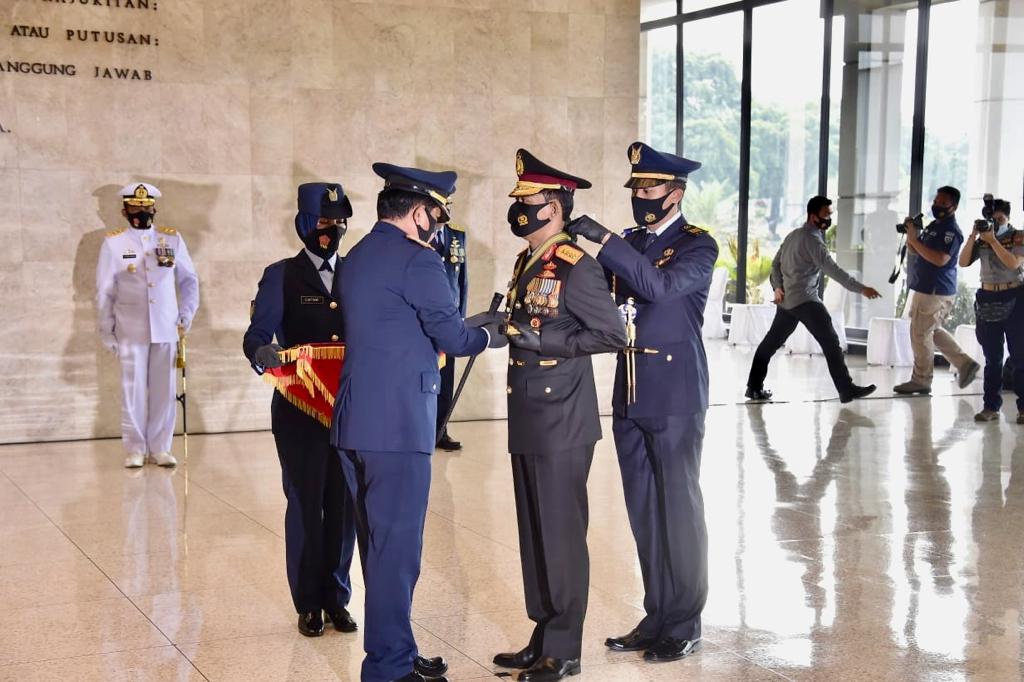 PROBATAM. CO, Jakarta— Panglima TNI Marsekal Hadi Tjanjanto menganugerahi Kapolri Jenderal Pol Idham Azis tiga bintang utama yaitu Kartika Eka Paksi Utama, Jalasena Utama dan Swa Bhuana Utama. Upacara penganugerahan digelar di Ruang Hening, Mabes TNI, Cilangkap, Jakarta Timur, Selasa (28/7/2020).