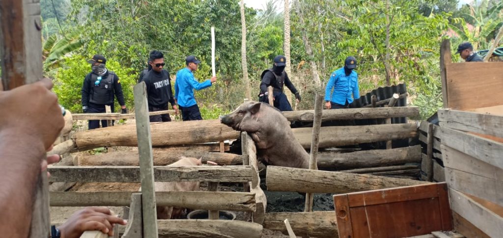 “Jumlah kandang sangat banyak, tapi jumlah tercatat oleh kami dari pemiliknya ada 15 pemilik kandang babi dan 2 kandang kambing, hari ini semua selesai untuk penertiban kandang kambing dan babi,” ujarnya.