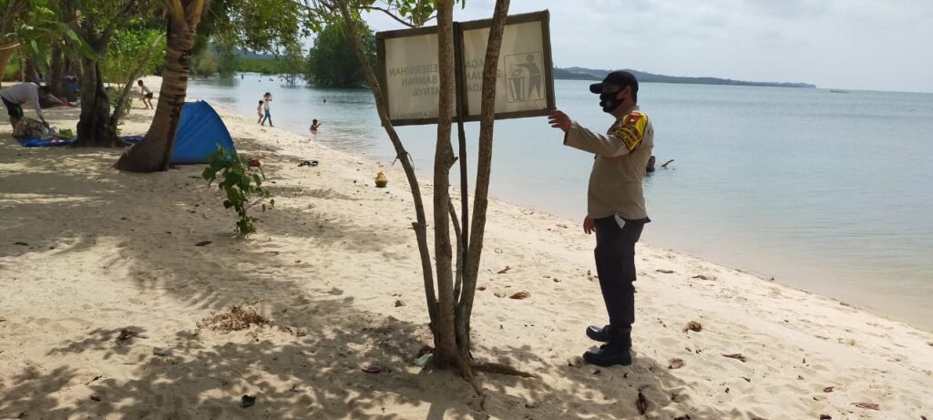 PROBATAM.CO, Batam- Polsek Galang Polresta Barelang kembali melaksanakan patroli himbauan dalam rangka penerapan adaptasi kebiasaan baru di tempat objek wisata di wilayah hukum Polsek Galang, Minggu (17/1/2021).