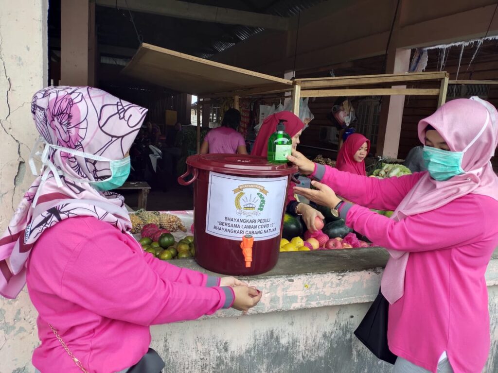 PROBATAM.CO, Natuna- Bakti Sosial Bhayangkari Cabang Natuna beserta seluruh Jajaran Ranting Bhayangkari Natuna dalam membantu memfasilitasi tempat cuci tangan untuk umum, Sabtu (11/7/2020)