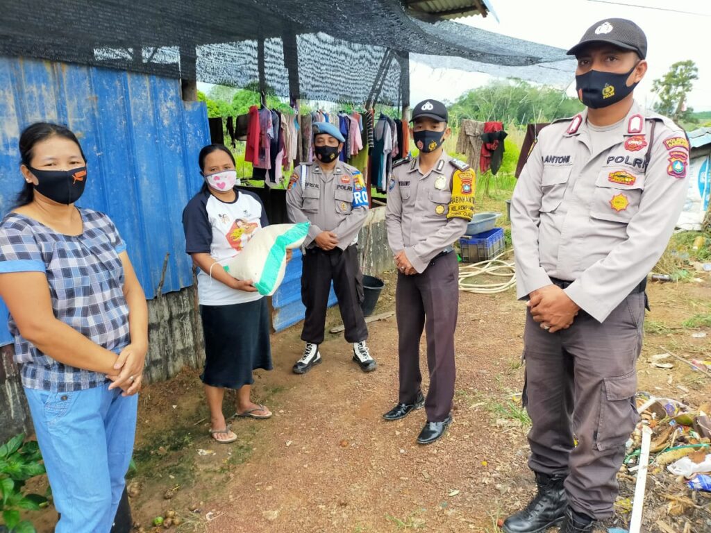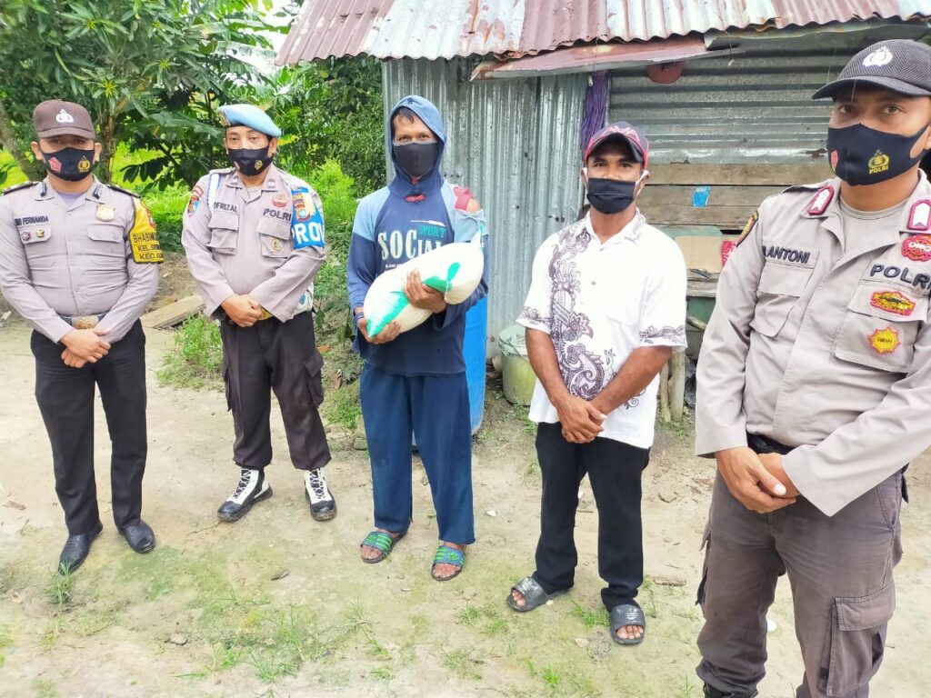 PROBATAM.CO, Batam- Kapolsek Galang AKP Herman Kelly bersama anggota menyalurkan bantuan sembako Polresta Barelang untuk masyarakat di wilayah hukum Polsek Galang, Rabu (19/8/2020).