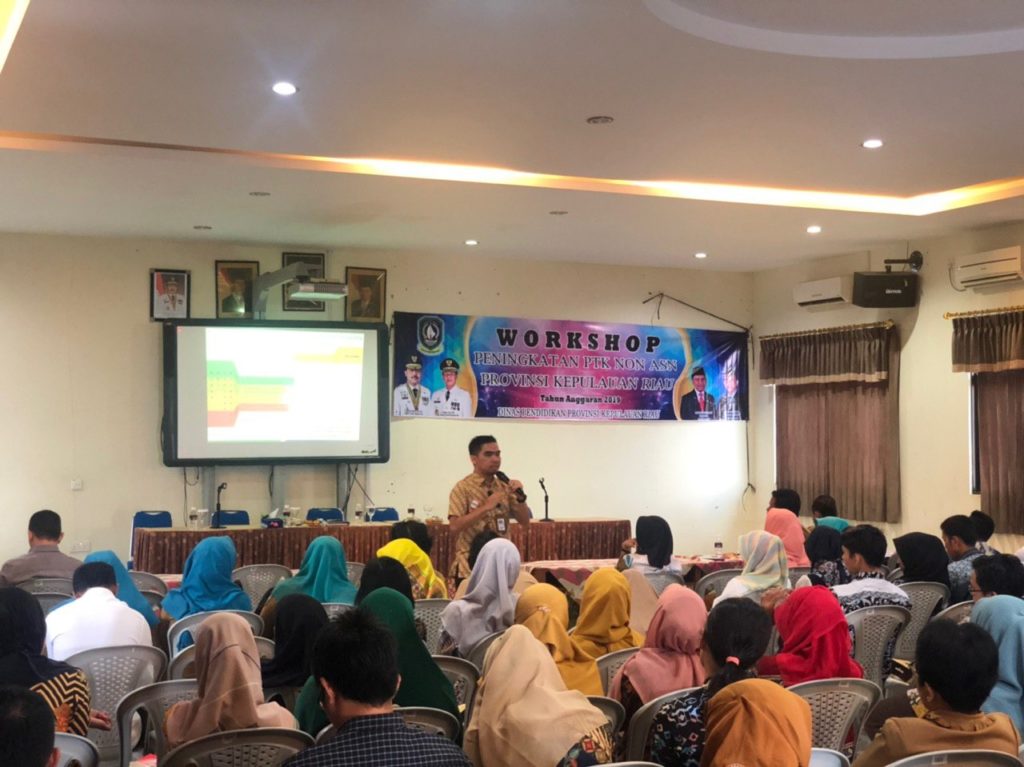 Workshop ditujukan kepada Pegawai Tenaga Kependidikan Non Aparatur Sipil Negara (PTK Non ASN) yang berada dibawah Dinas Pendidikan, khususnya di wilayah kerja Kota Batam dan Kabupaten Karimun. Sekitar 100 PTK Non ASN hadir dalam kegiatan ini.