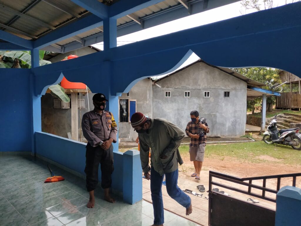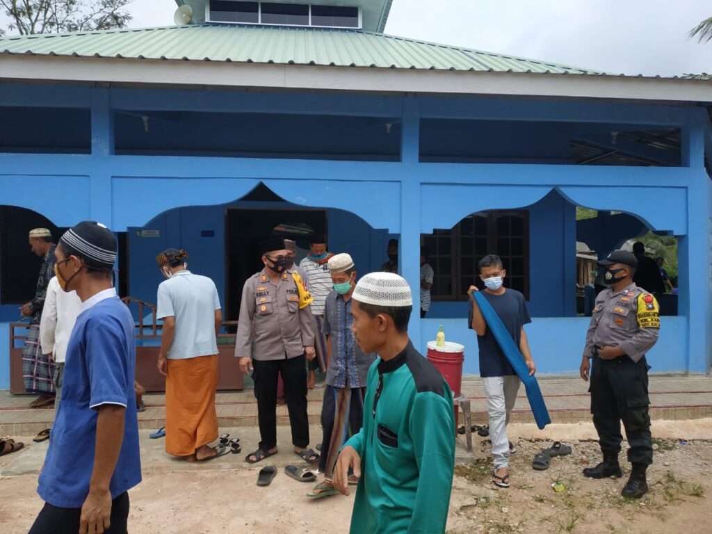 PROBATAM.CO, Batam- Kapolsek Galang AKP Herman Kelly bersama anggota Polsek setempat pengamanan dan ikut pelaksanaan sholat Jum’at di Mesjid Nurul Jihad, Sembilan, Galang, (23/10/2020) siang.