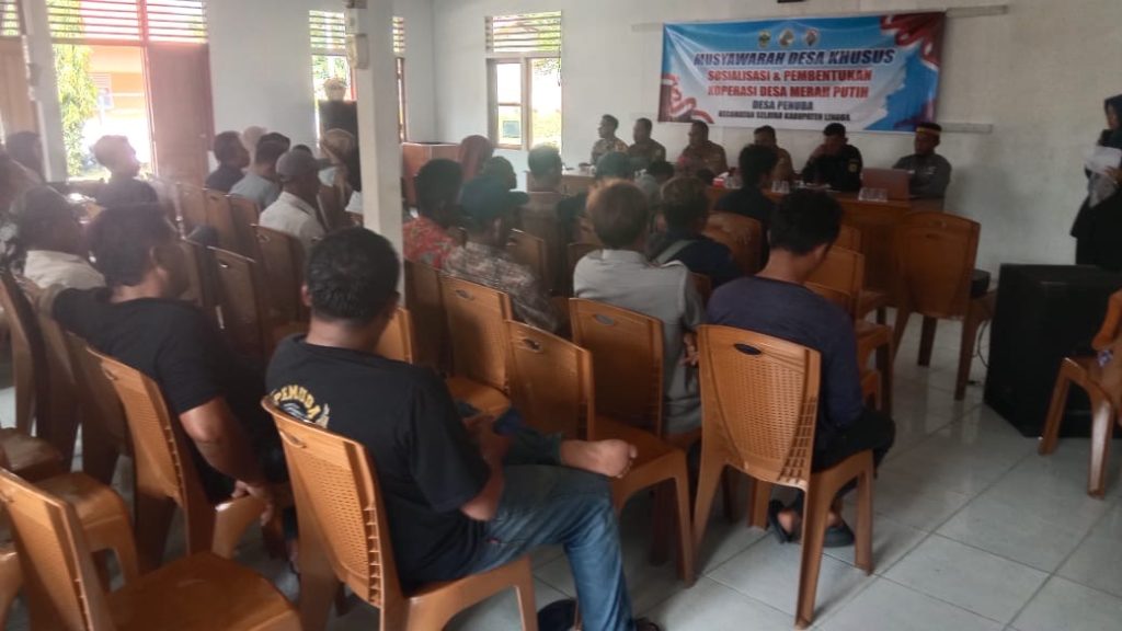 PROBATAM.CO, Lingga – Dalam upaya memperkuat perekonomian masyarakat desa, Bhabinkamtibmas Desa Penuba, BRIPTU Andika Laksono, turut mendampingi kegiatan Musyawarah Desa Khusus Sosialisasi dan Pembentukan Koperasi Desa Merah Putih yang digelar di Balai PKK Desa Penuba, Kecamatan Selayar, Kabupaten Lingga, Selasa (19/5/2025).
