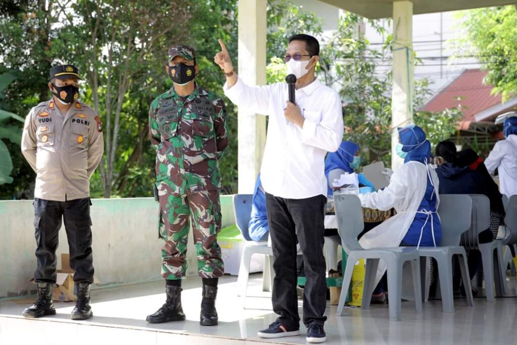 Wakil Walikota Batam, Amsakar Achmad tinjau kegiatak vaksinasi Covid-19 di Sekupang, Batam. (Photo: dok/pemko)