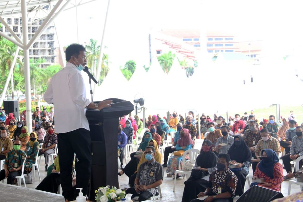“Bapak ibu (Kepala Sekolah) harus memikirkan apa yang harus dilakukan ditanggal 13 Juli 2020. Karena prediksi saya Covid-19 belum berakhir. Maka mulai dari hari ini harus diperhatikan,” pesan Rudi mengingatkan.