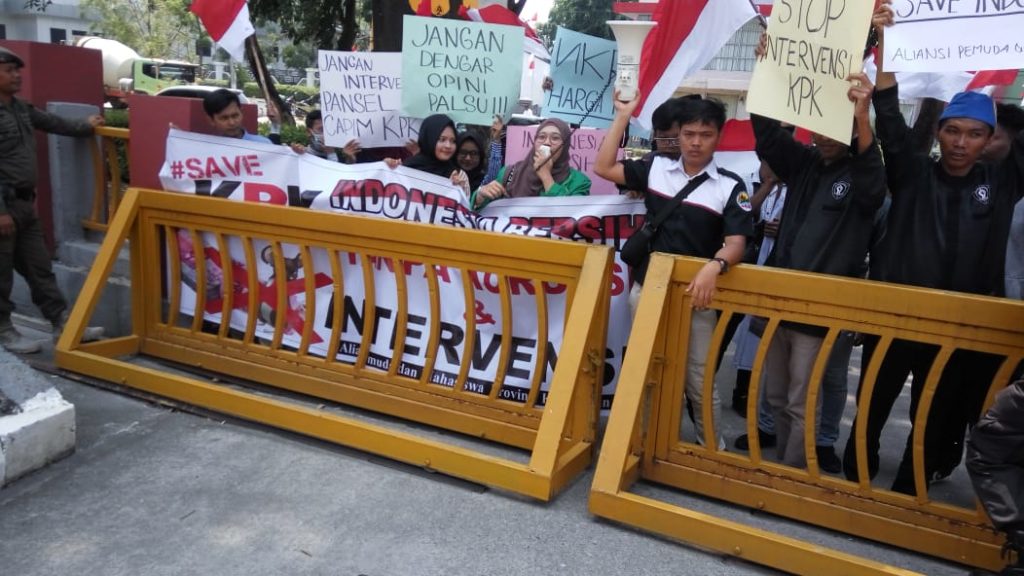 Disana, puluhan massa yang turun dalam aksi ini secara bergantian berorasi. Mereka juga membentangkan spanduk bertuliskan “Save KPK, Indonesia Bersih Tanpa Korupsi dan Intervensi”.