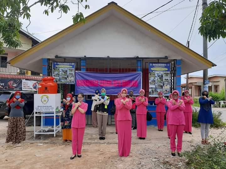 Beranda / Berita Utama / Pengurus Bhayangkari dan Yayasan Kemala Bhayangkari Cabang Kota Barelang Sosialisasi New Normal dan Bantu wastafel Portabel