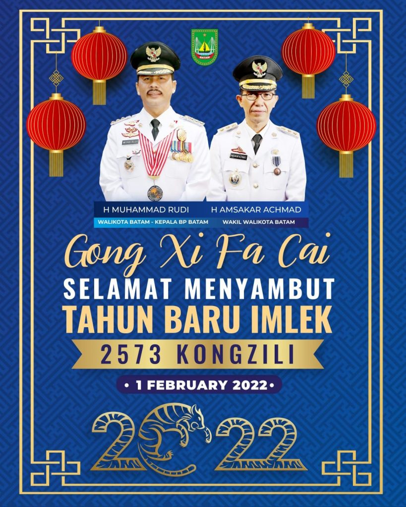 “Gong Xi Fa Cai! Semoga Batam mendapatkan kemakmuran di Tahun Baru Imlek 2022,” ujar Rudi, Senin (31/1/2022).