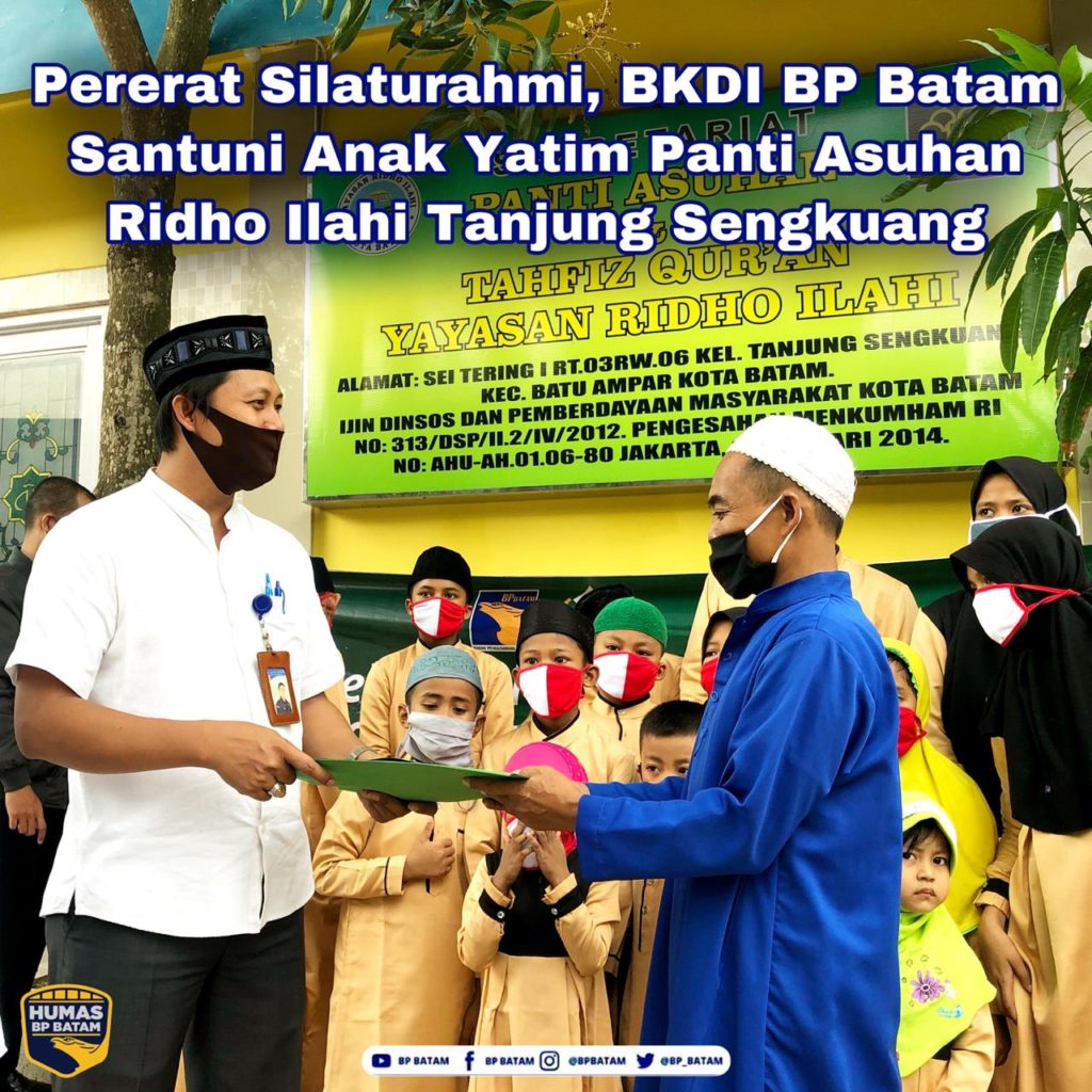 Terkait dengan itu pula, para pegawai BP Batam bergerak bersama secara sukarela untuk mengumpulkan infaq dan sodaqoh yang dananya digunakan untuk membantu masyarakat yang kurang mampu dan anak-anak yatim piatu. Santunan yang diberikan untuk Panti Asuhan Ridho Illahi oleh BKDI BP Batam ini merupakan hasil dari infaq dan sodaqoh yang dikumpulkan dari pegawai BP Batam.
