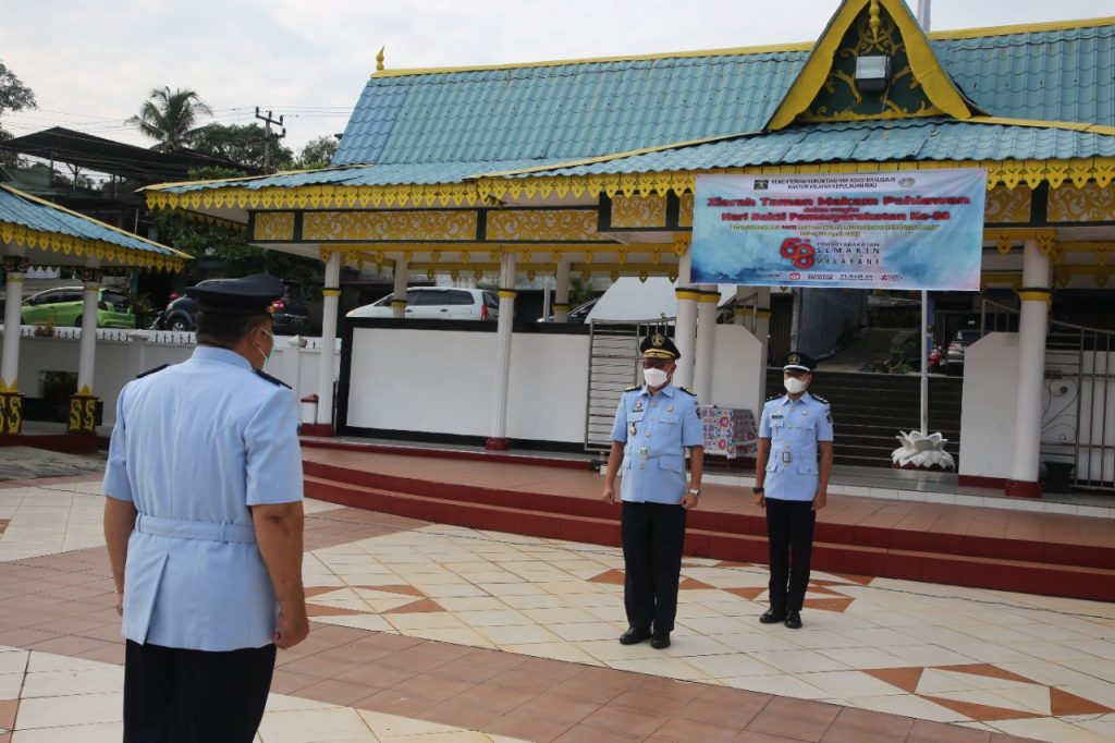 Kegiatan ini dipimpin langsung Plt. Kepala Kantor Wilayah Kanwil Kemenkumham Kepri Agung Rektono Seto dan juga diikuti Kepala Divisi Pemasyarakatan, Kepala Divisi Pelayananan Hukum dan HAM, Kepala UPT Pemasyarakatan, Ibu Dharma Wanita dan PIPAS Kepri, kegiatan Ziarah dan Tabur Bunga berjalan dengan lancar dan hikmat.