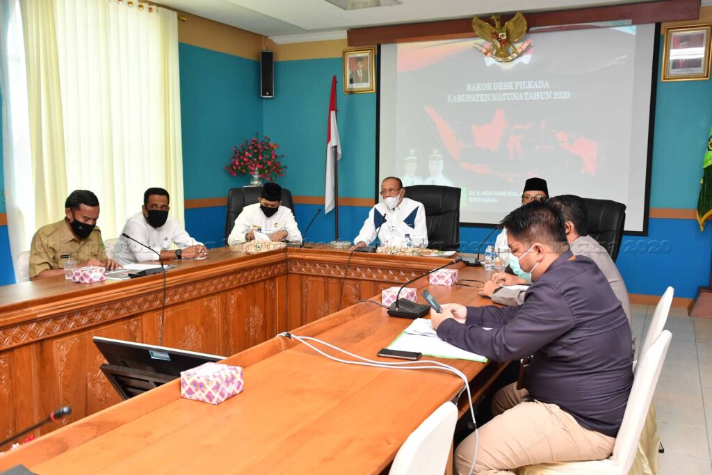 PROBATAM.CO, Natuna — Bupati Natuna, H. Abdul Hamid Rizal, M.Si memimpin Rapat Koordinasi Pemilihan Kepala Daerah dan Wakil Kepala Daerah Kabupaten Natuna, yang dilaksanakan di ruang rapat Lantai II, Kantor Bupati Natuna, Jalan Batu Sisir Bukit Arai, Ranai, Jum’at (6/11/2020) siang.