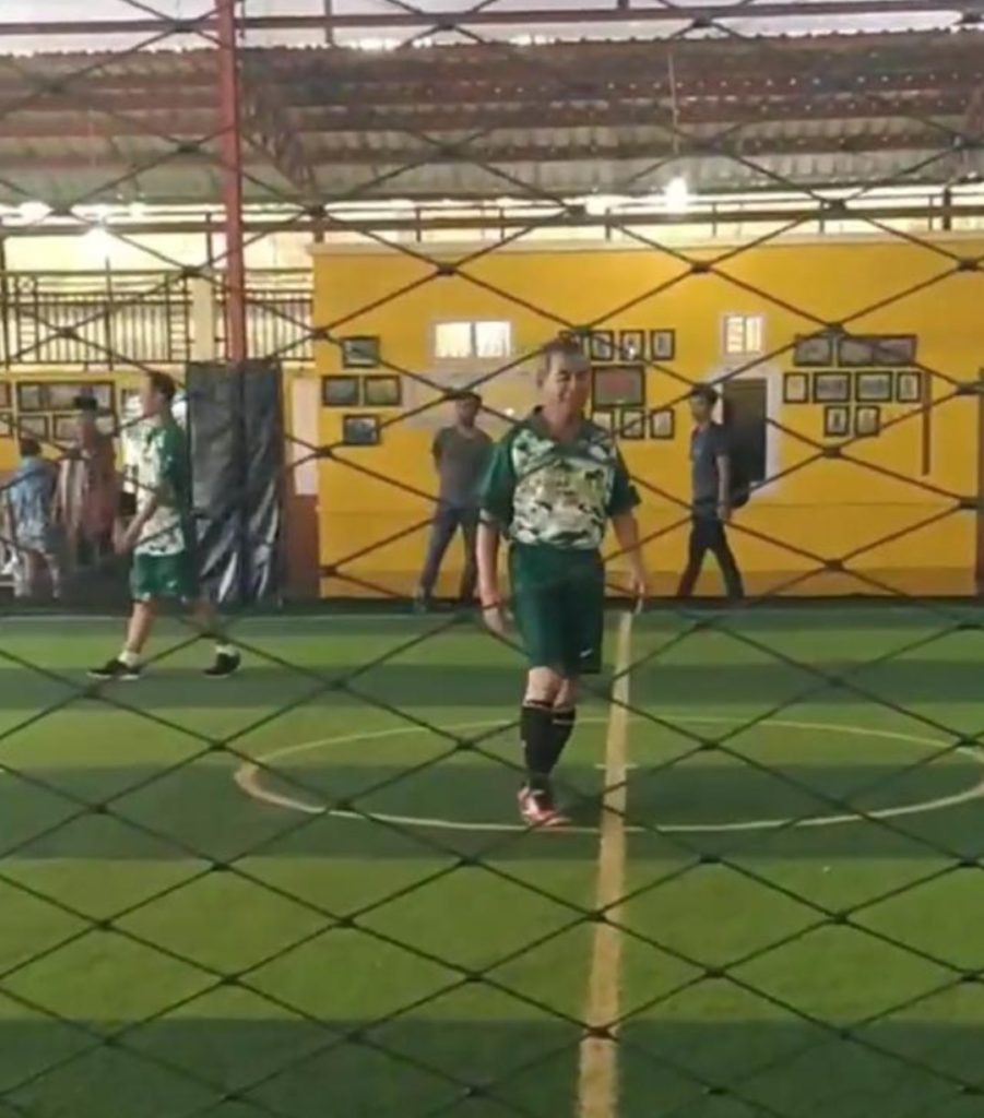 Mursini yang tampil dengan kostum serba hijau sore tadi terlihat begitu bersemangat mengimbangi pemain lawan yang rata-rata kaum milenial itu.
