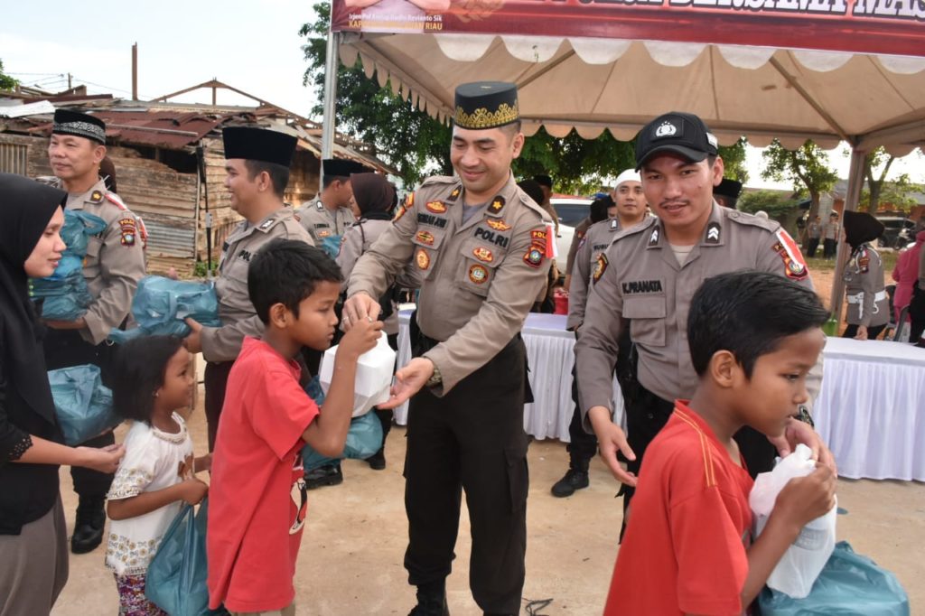Disana, Sambung Erlangga, jajaran Polda Kepri membagikan 2.000 nasi kotak dan 2.000 takjil kepada masyarakat setempat.
