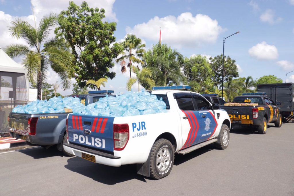Rombongan dilepas oleh Irwasda Polda Kepri Kombes Pol Musa Ikipson Manaek Muara Tampubolon dan dihadiri oleh Pejabat Utama (PJU) Polda Kepri. Sebanyak 10.117 paket sembako dibagikan secara serentak oleh Polda Kepri dan Polres/ta jajaran, dengan rincian Polda Kepri berikan bantuan paket sembako sebanyak 3.072 dan Polres/ta jajaran 7.046 paket sembako.