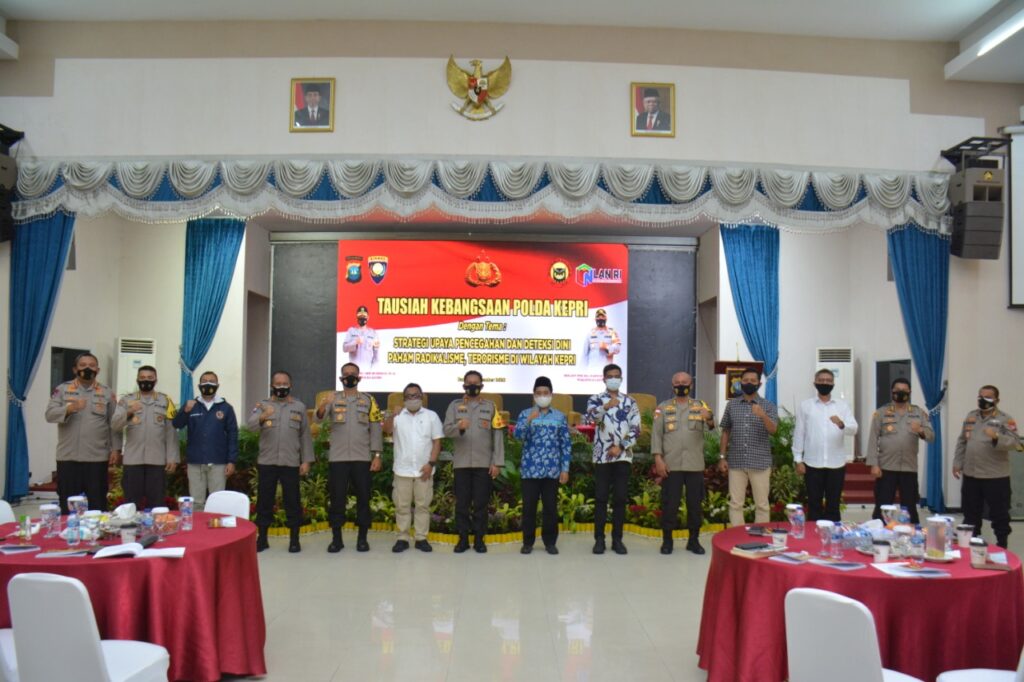 PROBATAM.CO, Batam – Polda Kepulauan Riau (Kepri) menggelar Tausiah Kebangsaan dengan mengangkat Tema Strategi upaya pencegahan dan deteksi dini paham Radikalisme, Terorisme di Wilayah Kepri. Rabu (4/11/2020).